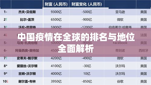 近年来,新冠疫情在全球范围内持续蔓延,各国都面临着巨大的挑战,中国作为世界上的人口大国,其疫情形势一直备受关注,关于“中国疫情排名世界第几位”这个问题,我们需要从多个角度进行全面的探讨。