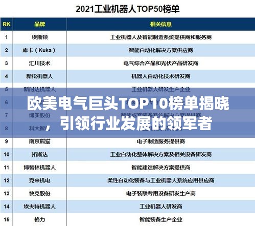 欧美地区的电气企业在全球范围内处于领先地位,这些企业在技术研发、产品创新和市场布局等方面均表现出色,本文介绍的欧美电气排名前十名的企业,代表了全球电气行业的最高水平,它们将继续引领行业发展潮流,推动全球电气产业的进步。