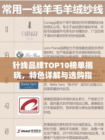 在日常生活和工作中,针线作为缝纫和修补的重要工具,扮演着不可或缺的角色,本文将为您介绍针线品牌排名前十名及其特色,让您在选择时更加得心应手,以下是根据市场影响力、产品质量和用户口碑等因素综合评选的品牌排名前十名图片及详细介绍。