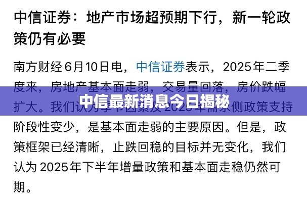 随着全球经济的不断发展和变化,中信集团作为中国的重要企业之一,其最新动态备受关注,本文将为您介绍中信今日的最新消息。