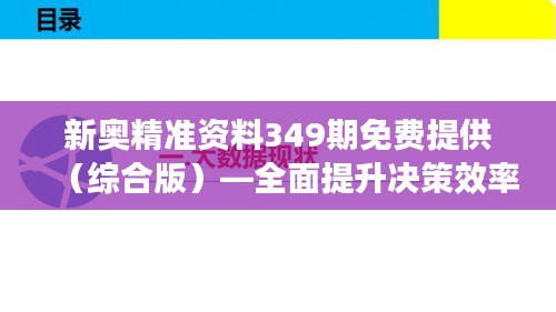 在信息爆炸的时代,决策者面临着前所未有的挑战,如何从海量数据中提取有价值的信息,制定明智的决策,已成为每个决策者必须面对的难题,为解决这一难题,新奥精准资料349期免费提供(综合版)应运而生,旨在帮助决策者从信息的海洋中提炼出关键要素,为决策提供强有力的支持。