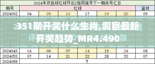 当我们讨论351期开奖趋势时,MR4.490这个编号不仅代表着具有澳门特色的开奖信息,更蕴含着对未来生肖走势的期待与探寻,通过分析开年至今的生肖开奖数据,结合MR4.490的预测模型,我们可以更宏观地把握博彩趋势,为决策提供参考,在即将到来的351期开奖中,MR4.490将指向哪种生肖呢?